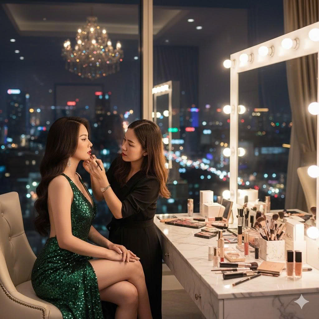 Trang điểm dự tiệc giúp bạn nổi bật nhưng vẫn tinh tế. Lớp nền mịn nhẹ, che phủ tốt, bền màu suốt buổi tiệc. Tư vấn tone phù hợp gương mặt và trang phục.